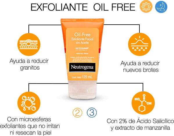 Limpia con el Limpiador Facial de Neutrogena® Oil - Free, que ayuda a reducir y prevenir granitos de forma eficaz y gentil con Ácido Salicílico y extracto de manzanilla.